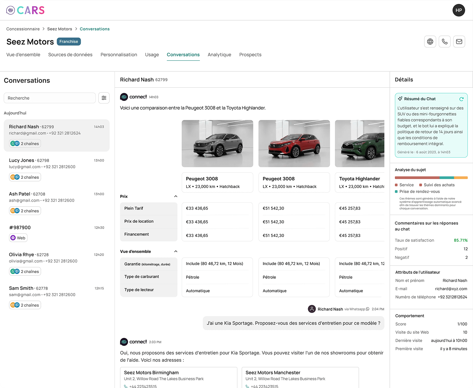 Approche conversationnelle interactive pour la découverte des véhicules et les tâches liées à la possession.